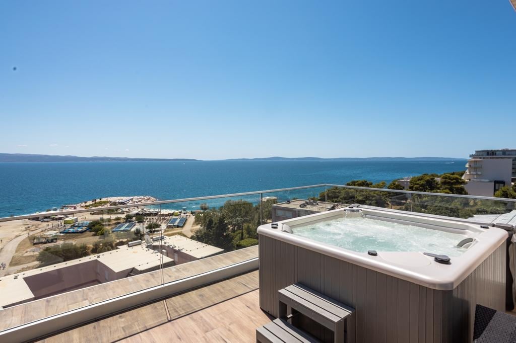 Luksuzni stan sa pogledom na more i hidromasažnom kadom. Apartment Zaloo (62 m²) is a brand new residence located in Split, Dalmatia region near the city beach Žnjan. Stan ima prekrasan pogled na more iz dnevne sobe i natkrivene terase sa malom baštom, koja takođe uključuje hidromasažnu kadu i udoban prostor za sjedenje. Uključena je i besplatna Wi-Fi veza i privatno parking mjesto (u parking garaži).