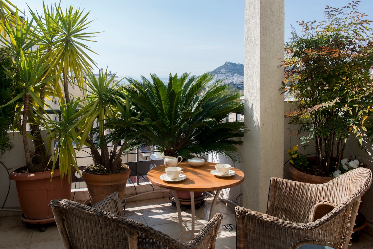Predivan i svetao stan na 4. spratu u Kolonakiju u centru prodavnice, restorana i noćnog života u Atini. Velika terasa sa pogledom na Akropolj i Lykavito. Idealno za turističke ili radne posjete. 20mn hoda do Akropole preko trga Sintagma ili do Nacionalnog arheološkog muzeja. 5mn hoda od muzeja Benaki i Kikladskih, kao i do Nacionalnih vrtova.
