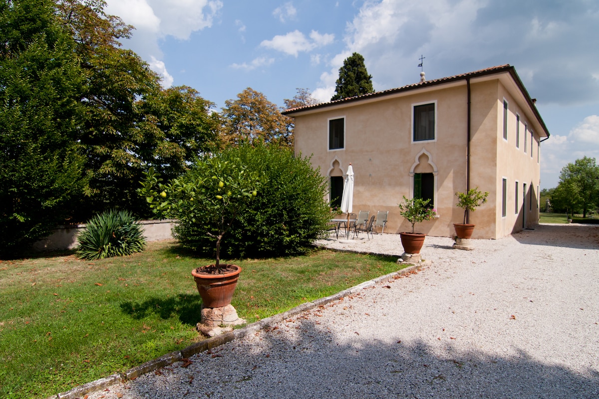 Ovo je mala nezavisna seoska kuća koja je nedavno renovirana po najvišem standardu i nalazi se u sklopu uređene bašte od 12 hektara italijanske vile za iznajmljivanje koja ima koristi od 200 kvadratnih metara izvan stambenog prostora sa roštiljem, rernom za picu i trpezarijom/dnevnim boravkom. Gosti imaju pristup uređenom parku od 12 hektara i zaista spektakularnom grijanom bazenu od 100 kvadratnih metara koji se nalazi u voćnjaku maslina. Lokacija je udaljena 45 minuta vožnje od Padove i Verone i sat vremena vožnje od Venecije.