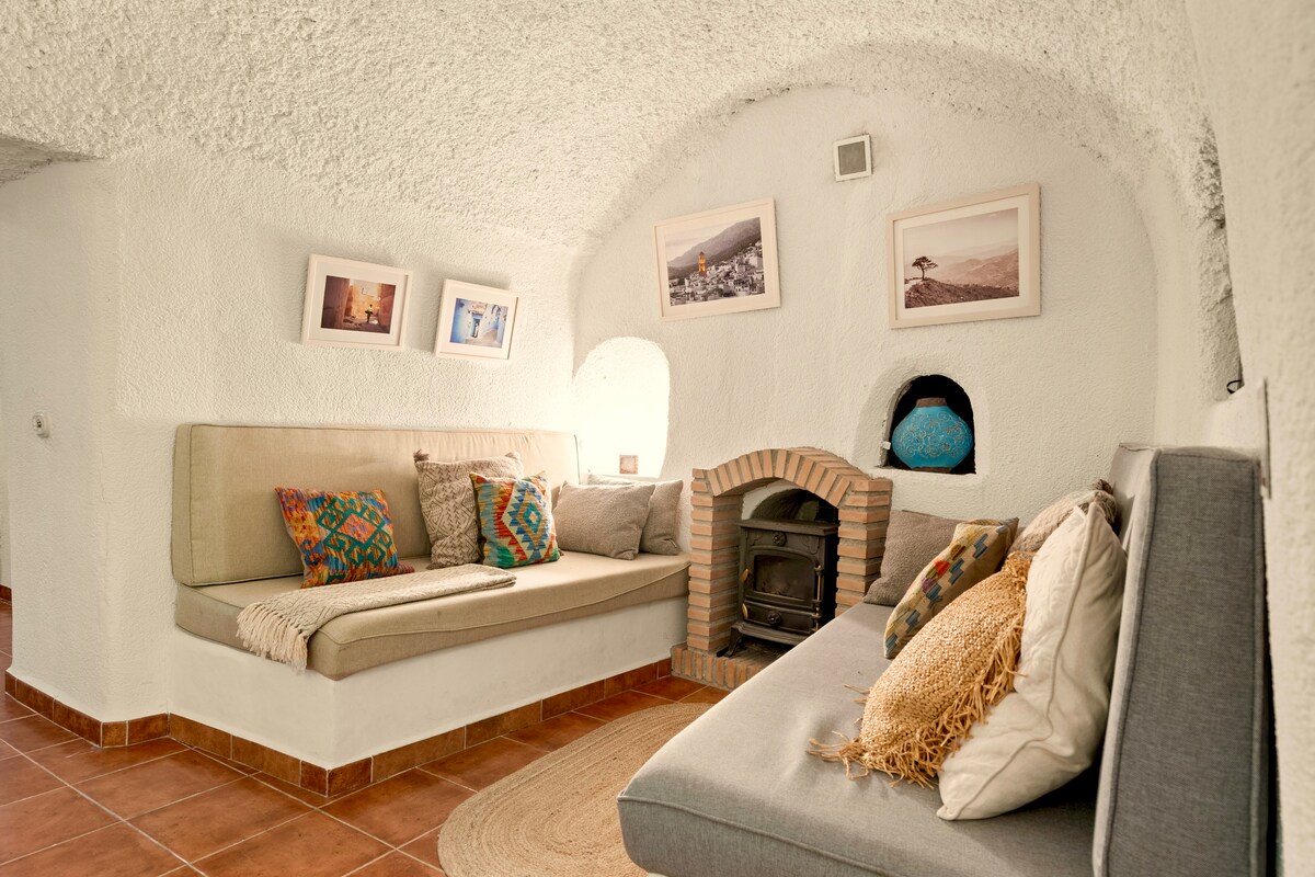 Naša Cueva Aventura nudi tri pećinska smeštaja: Cueva Francesca za 1/3 osobe (prilagođen pristup osobama smanjene pokretljivosti), Cueva Lucia za 2/5 osoba i Cueva Emilia za 4/7 osoba. La Cueva Francesca (50m2) sastoji se od privatnog i nameštenog unutrašnjeg dvorišta, dnevnog boravka (opremljena kuhinja, ugradni kauč, sto, stolice, TV), velike spavaće sobe (1 krevet od 180 i 1 krevet od 90 ili 3 kreveta od 90, doplata za treći krevet za jednu osobu), tuš kabine, lavaboa, WC-a. Naš bazen sa slanom vodom (bez alergija, bez mirisa, ali gdje vam zahvaljujemo na stabilnosti i održavanju vode tako što ne koristite kreme za sunčanje) obložen svojim malim kuevas za vašu siestu, kao i roštilj i teren za boć su zajednički. Cena uključuje posteljinu (koja se menja po dolasku), peškire, peškir za bazen, čišćenje na kraju boravka i struju. Bioklimatska karakteristika pećine je prirodna klimatizacija. Najbliži aerodrom: Granada i potrebno je prevoziti se. Tako loše vreme: Netflix 😉 Mali dodaci kako ne biste bili nespremni: tečnost za pranje sudova, sunđer, krpe za sudove, sveža voda, kafa (kapsule, kafa i filteri), čaj, šećer, osnovni začini (ulje, sirće, so, biber)... i malo slatkiša ✨✨✨
