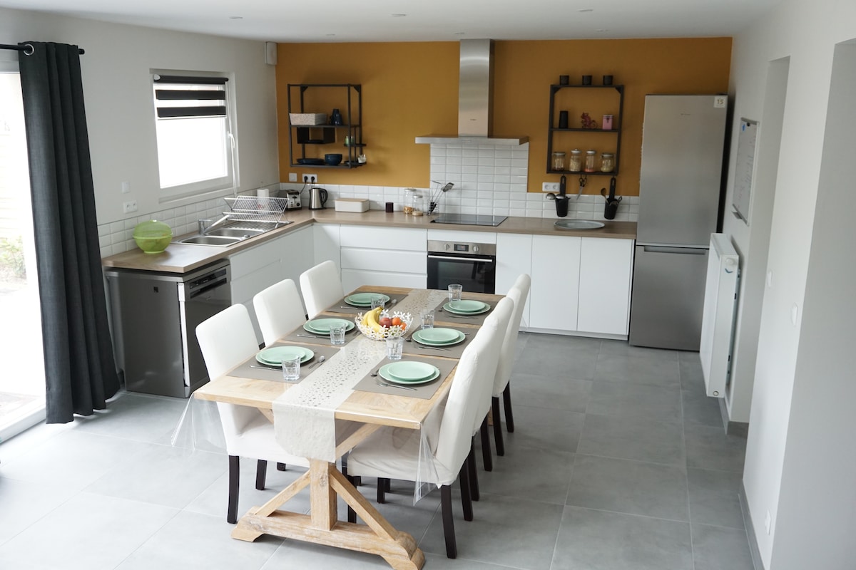 Andrea i Ksavijer nude prostranu, svijetlu i funkcionalnu kuću u neposrednoj blizini ogromne plaže Zuydcoote i direktan pristup biciklističkoj stazi. Kuća u nizu u blizini centralnog trga gde se nalaze pekara, bife, apoteka… mala pijaca sredom ujutru, supermarket Aldi na 500 m. Odlično za boravak s porodicom, prijateljima ili poslovnim putovanjima.