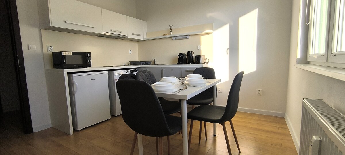 Dobro došli u naš udoban stan u kojem ćete se osjećati kao kod kuće! Čeka vas udoban krevet, zavjese za zamračivanje za savršen noćni san, moderna kuhinja sa Nespresso mašinom, dnevna soba savršena za opuštanje i mašina za pranje i sušenje veša radi lakšeg snalaženja. Samostalna prijava, brza Wi-Fi mreža i odlična lokacija učiniće da se osjećate prijatno u svakom trenutku. Bez obzira na to da li tražite odmor ili prostor za rad, ovo je odličan smještaj. Rezervišite još danas i uživajte u nezaboravnom boravku!